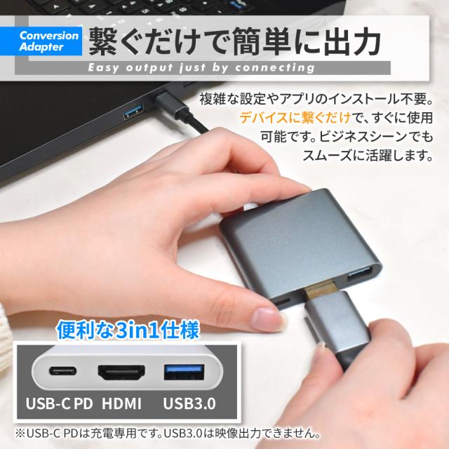 変換アダプタ ハブ アダプタ 変換器 変換ケーブル HDMI hdmi usb Type-C TypeC タイプ-C TYPEC USB C USB 3.0 給電不要 充電不要 テレビ 接続 iPhone iphone iPad スマホ タブレット ノートパソコン PC Apple MacBook Mac Book windows TV モニター ディスプレイ ゲーミングモニター TV プロジェクター 4K対応 取り付け簡単 差し込むだけ 薄型 軽量 コンパクト デザイン 持ち運び 動画 映像 コード 投影 出力ケーブル ミラーリング 充電 データ転送 在宅ワーク テレワーク zoom 遠隔授業 テレビ会議 リモートワーク 大画面 オンライン飲み会 リモート授業 おしゃれ オシャレ