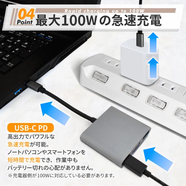 HDMI 変換アダプタ アダプター ハブ Type-C USB3.0 高速転送 HDMI 4K高画質 USB-C PD 100W 急速充電 充電不要 iPhone アイフォン android アンドロイド iPad タブレット テレビ 接続 ケーブル変換ケーブル 充電しながら使える モニター ミラーリング