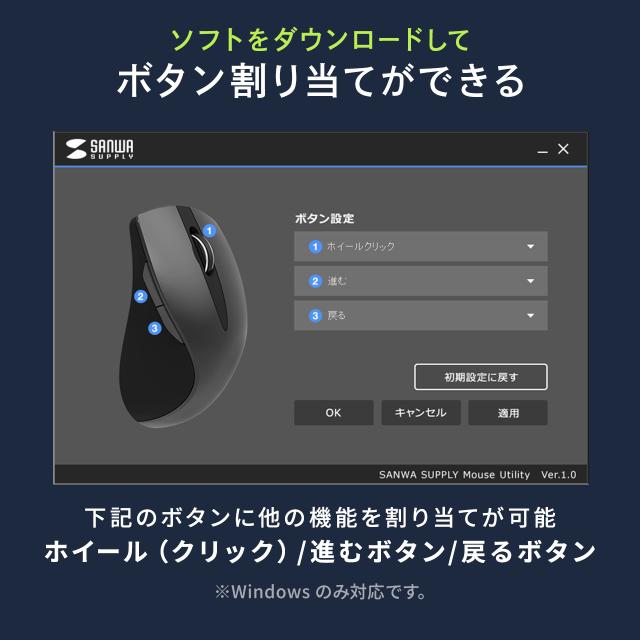 左右スクロール:マウスの横スクロール機能。Excelやブラウザ操作に便利です。※Mac非対応