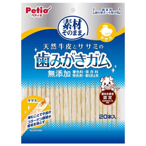 素材そのまま 天然牛皮とササミの歯みがきガム ササミ(20本入)[犬のおやつ・サプリメント]