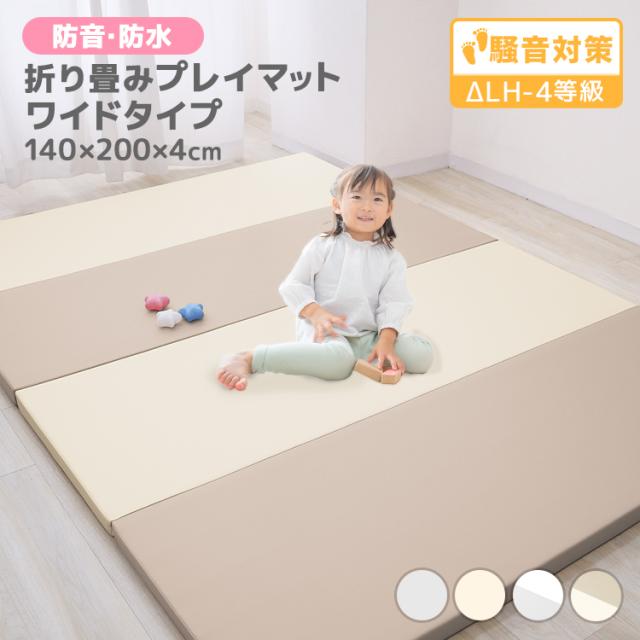 プレイマット ベビー 4つ折り ワイド 200×140×4cm 厚手 折りたたみ マットレス シームレスマット シームレス 抗菌 防水 防音 赤ちゃん キッズ ベビーマット キッズサークル グレー 送料無料
