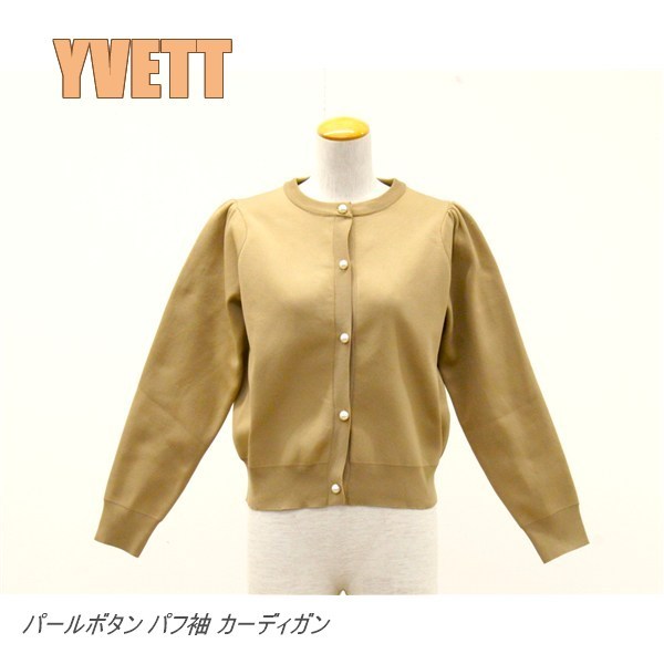 送料無料 アウトレット YVETT レディース トップス パールボタン パフ袖 カーディガン 春秋 #68516 P1025