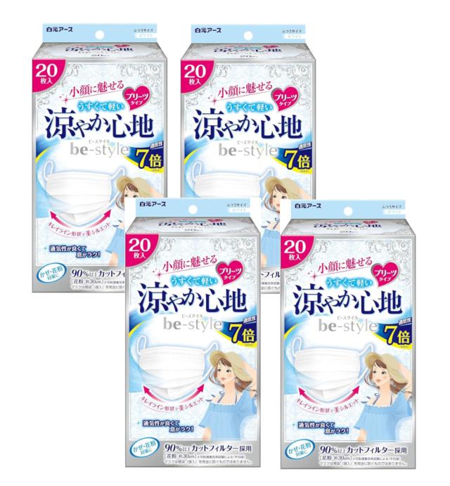 ビースタイル プリーツタイプ 涼やか心地 ホワイト 20枚入×4【4個セット】送料無料 夏用マスク 女性用 涼しい 小顔 おしゃれ 不織布 息がしやすい