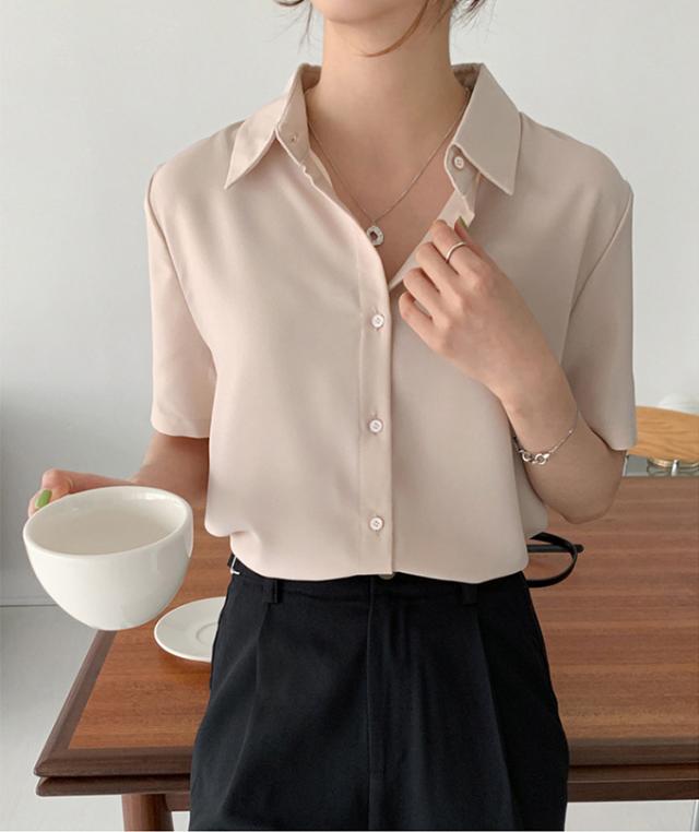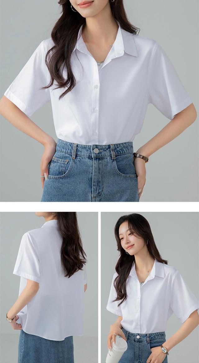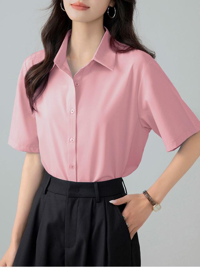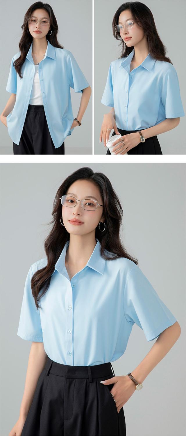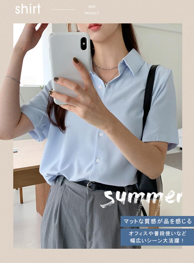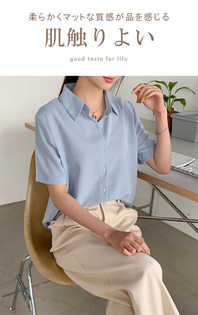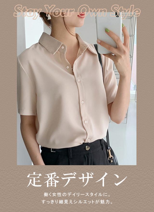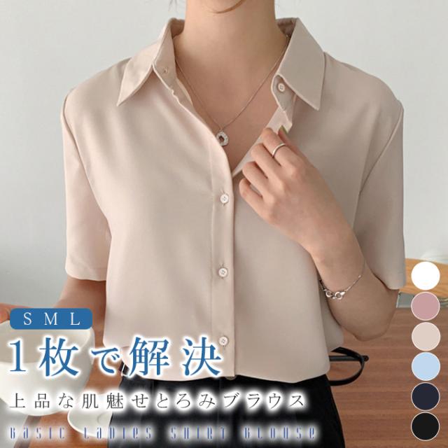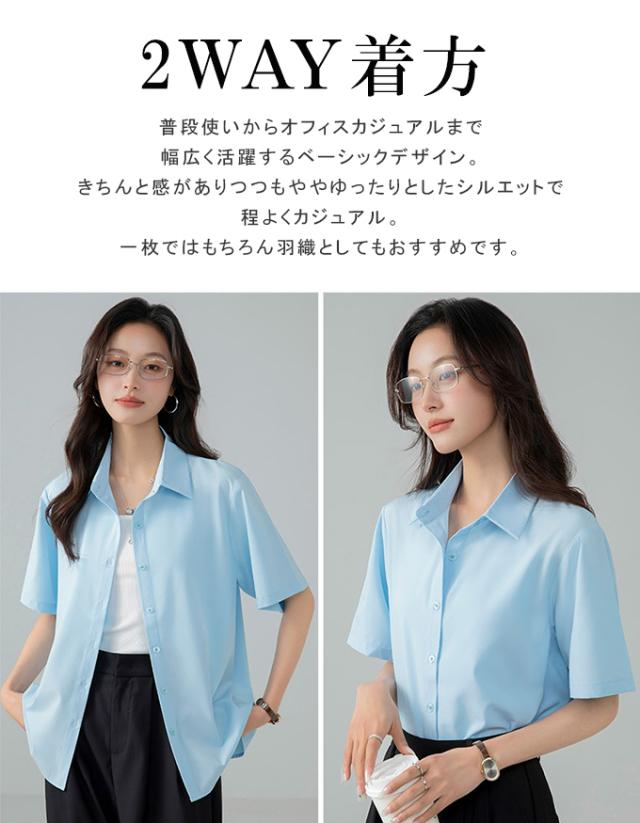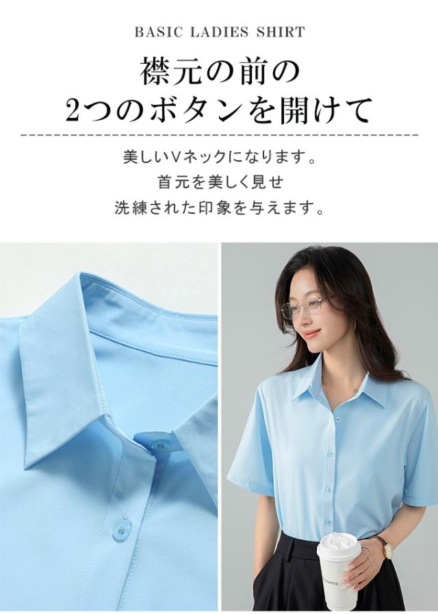 ブラウス オフィス 半袖 レディース とろみ シャツブラウス 白 シャツ 夏 フォーマル シワになりにくい 襟付き 開襟 スキッパーシャツ ワイシャツ