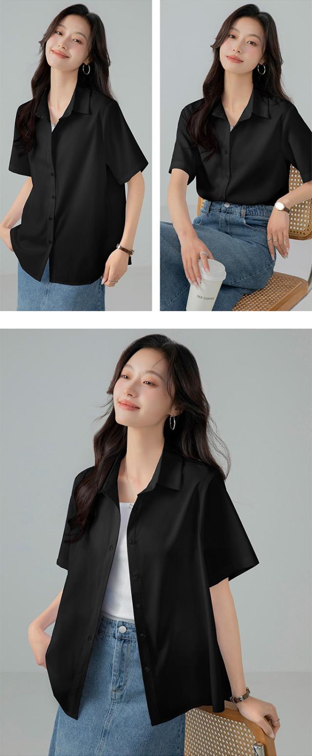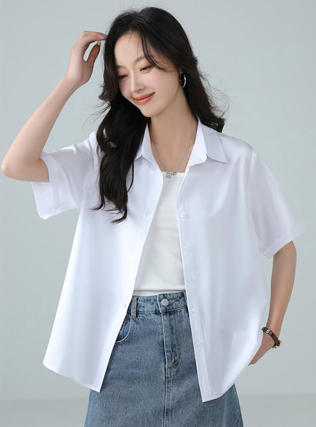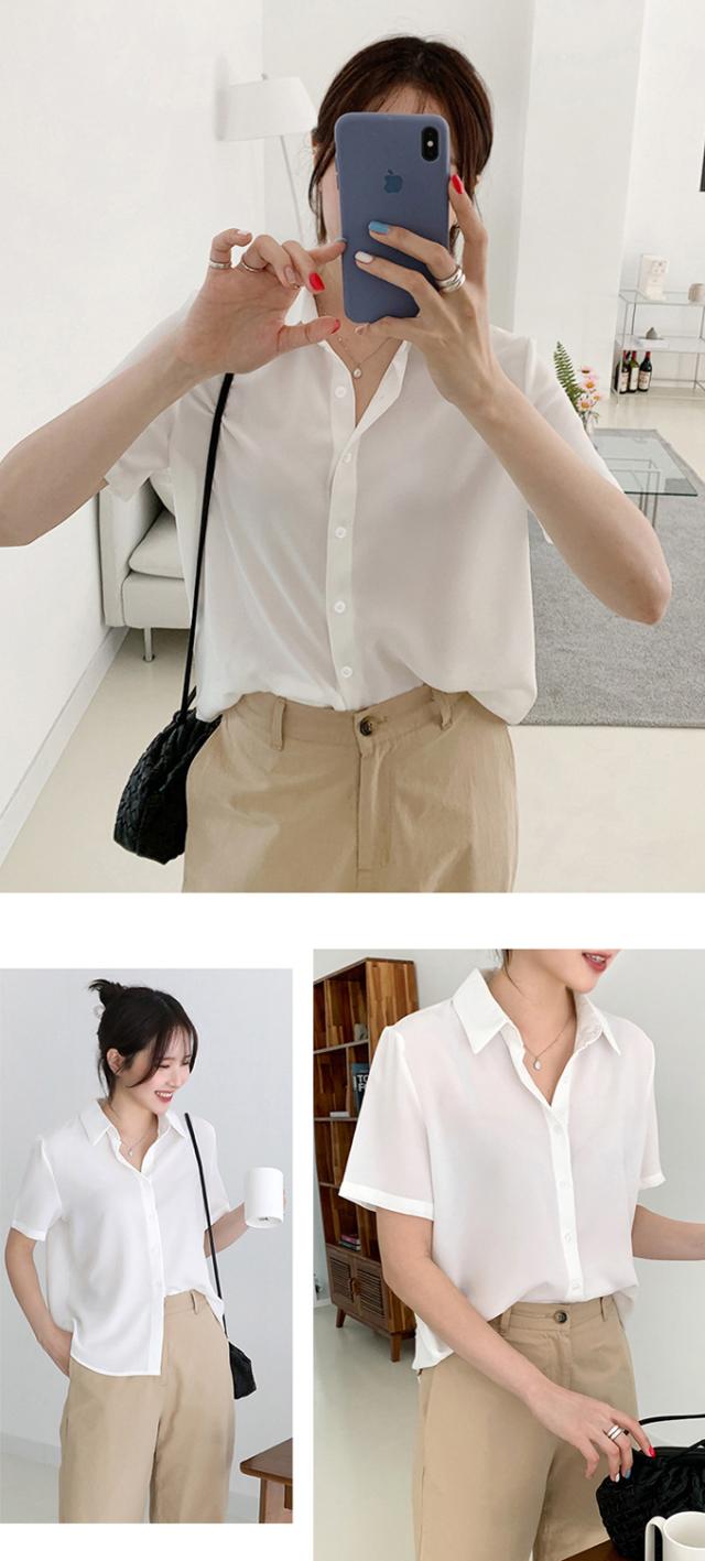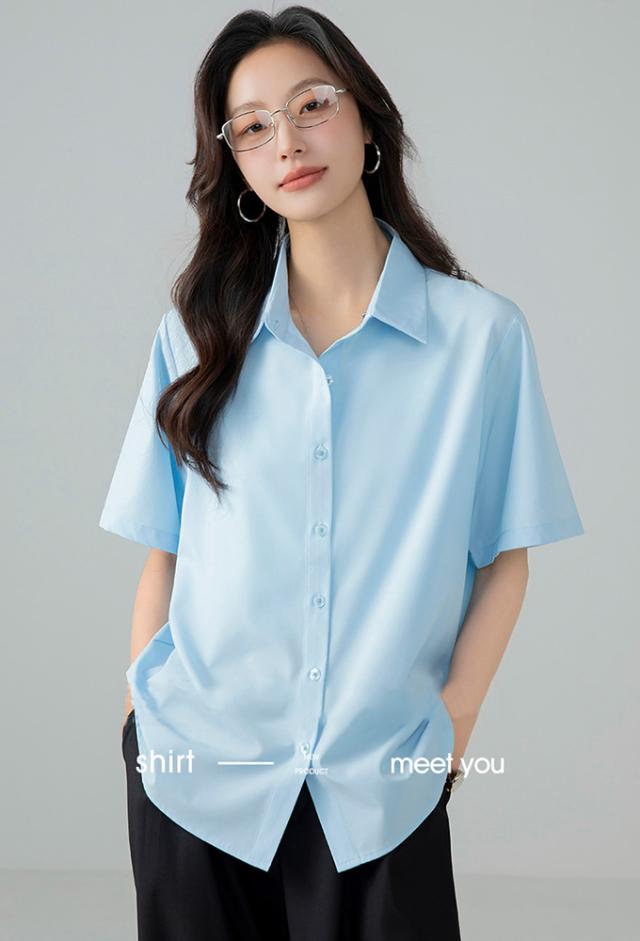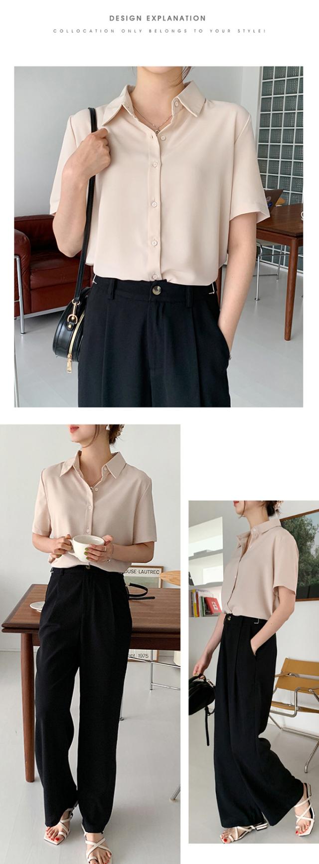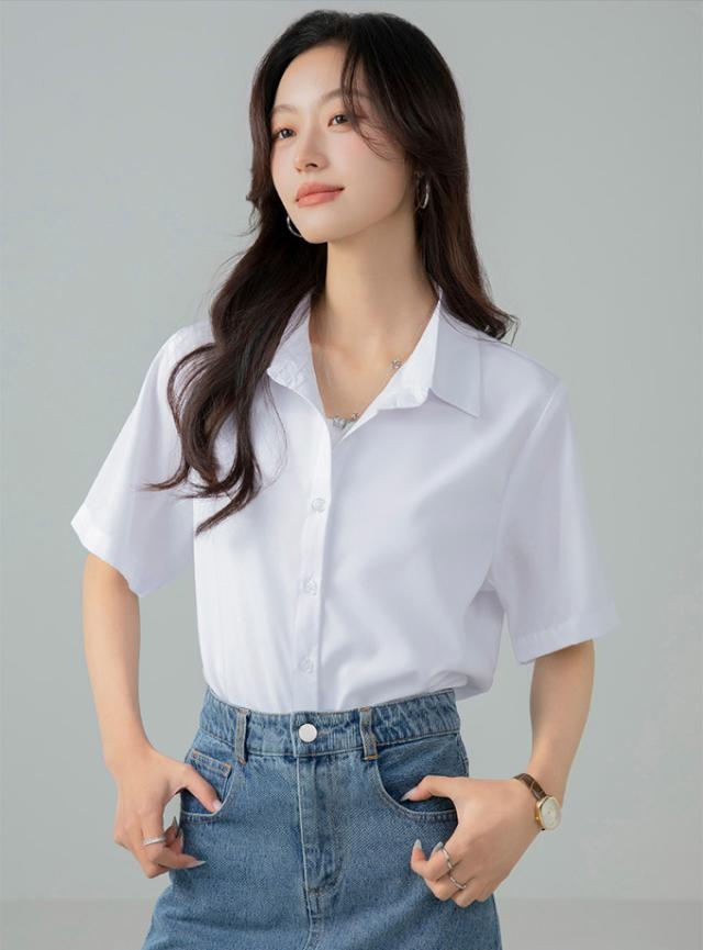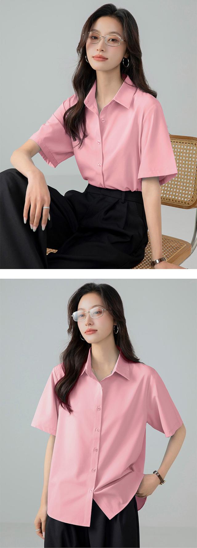 ブラウス オフィス 半袖 レディース とろみ シャツブラウス 白 シャツ 夏 フォーマル シワになりにくい 襟付き 開襟 スキッパーシャツ ワイシャツ