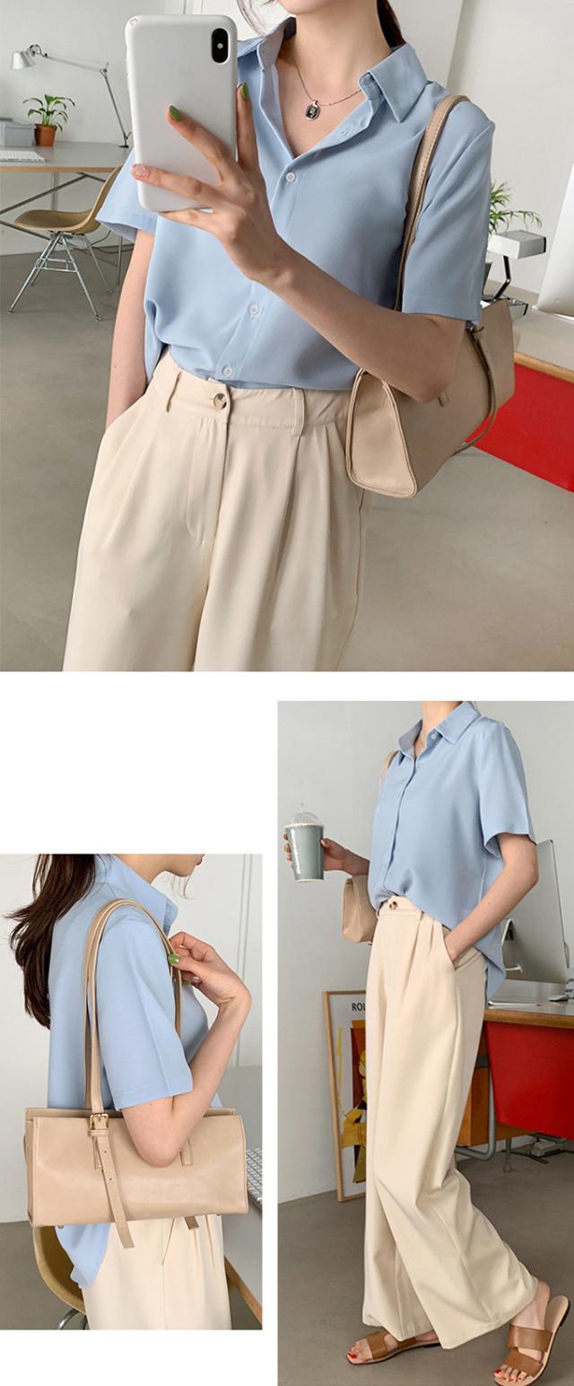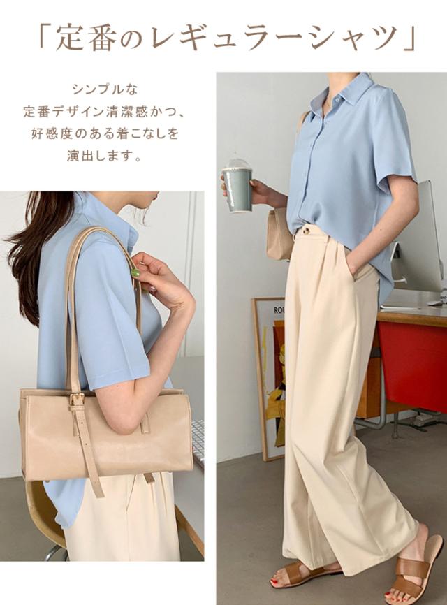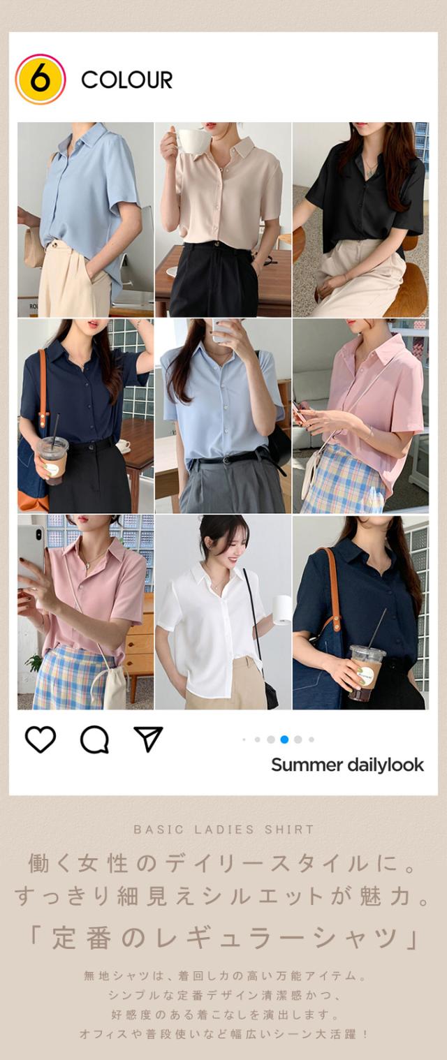 働く女性のデイリースタイルに。すっきり細見えシルエットが魅力。 「定番のレギュラーシャツ」 無地シャツは、着回しカの高い万能アイテム。 シンプルな定番デザイン清潔感かつ、 好感度のある着こなしを演出します。 オフィスや普段使いなど幅広いシーン大活躍! ※モニター環境により多少色合いが異なりますので、予めご了承くださいませ |