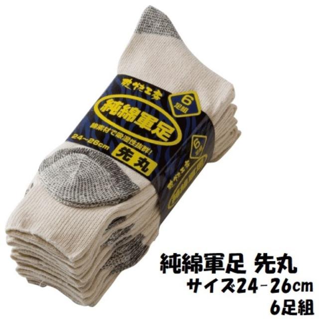 先丸軍足 ソックス 綿100% 男性用 6足組 キナリ 24-26cm 川西工業 #054