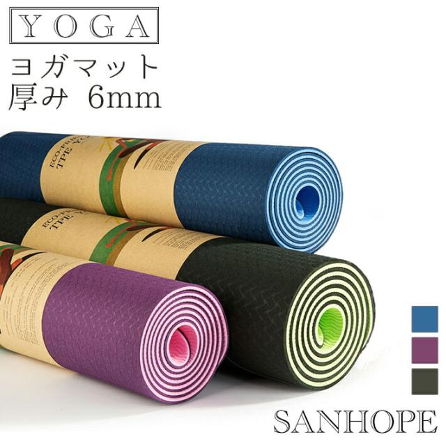 ヨガマット 6mm ヨガ ピラティス エクササイズ フィットネス 筋トレ 大胸筋 軽量 腕立て伏せ 初心者