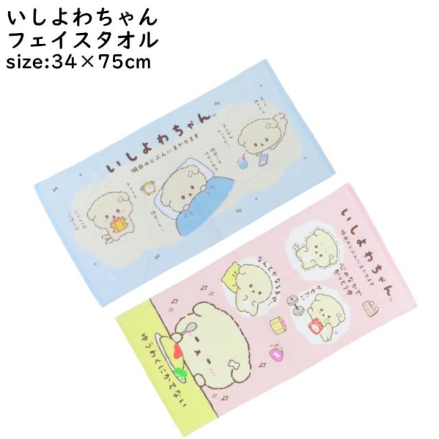 フェイスタオル キャラクター 約34×75cm 綿100% いしよわちゃん san-x シャーリグ パイル 可愛い プリント タオル サンエックス 犬飼タオル コットン