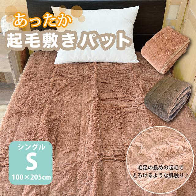 ふんわりファー敷きバッド 100×205cm シングル マイクロファー 起毛 極暖 ブラウン モカ ふわふわ あったか 敷き毛布 パット 無地 丸洗いOK ウォッシャブル 洗える