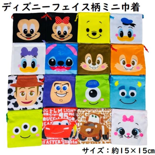 ディズニー フェイス柄 ミニ巾着 Sサイズ 幅15×高さ15cm ディズニー ミッキー ミニー ドナルド デイジー トイストーリー くまのプーさん カーズ マリー スティッチ チェシャ猫 男の子 女の子 コップ入れ 小物入れ 子供 子ども キッズ