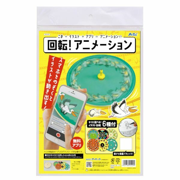 スマホをのぞくとイラストが動きだすこま+アプリでアニメーション!すぐに遊べるイラスト台紙6種類付!