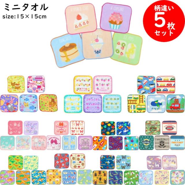 ミニタオル 5枚 セット 組 ノンキャラ ピッコリーノ ハンカチ タオル 15×15cm 綿100% 制菌加工 肌に優しい ポケット 子供用 キッズ ポケット コンパクト 車 恐竜 昆虫 リボン ゆめかわ ユニコーン コスメ フルーツ サッカー 星