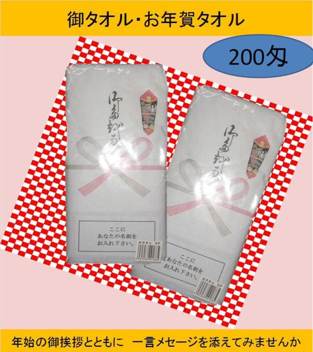 【30枚単位】 年賀タオル のし紙付き 30枚セット ビニール袋入り 名刺入れ付き 白タオル 200匁 総パイル 1本ずつ のし紙付き 中国製 お年賀 粗品 ご挨拶 販促用品 景品 のし巻き 御タオル 200
