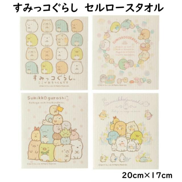 すみっコぐらし セルロースクロスタオル 20×17cm キャラクター タオル セルロース 綿 天然素材 エコ 環境にやさしい 吸水性抜群 多用途 すみっコ すみっこ サンエックス