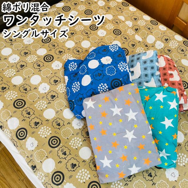 ワンタッチシーツ シングル 約105×205cm 綿ポリ 混合 総柄 敷き布団 寝具カバー 敷布団 カバー