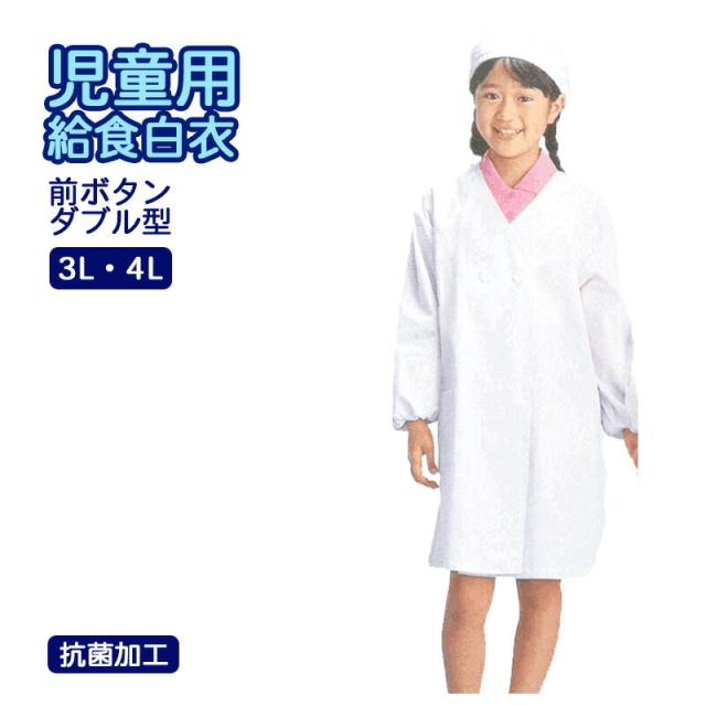 給食着 前開き ダブルボタン 抗菌加工 大きめ 大きいサイズ 3L 4L サイズ 小学生 学童用 給食白衣 学校給食 エプロン 白衣 給食エプロン 学校 前ボタン 給食 抗菌 給食衣 長袖 タイプ 白 子供 こども 子供用 男の子 女の子 キッズ