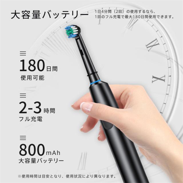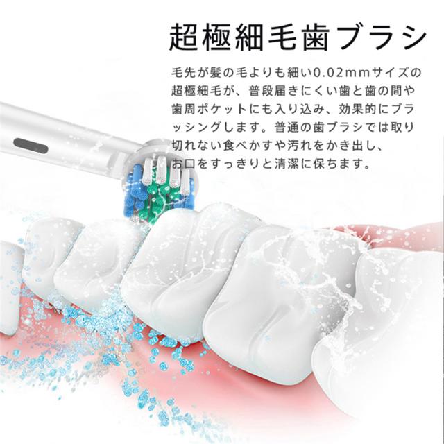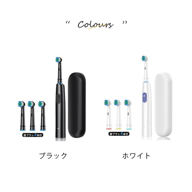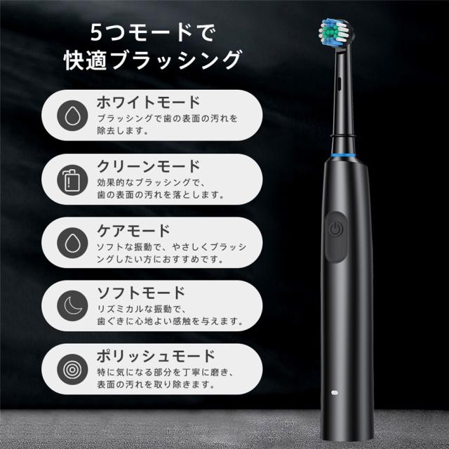 電動歯ブラシ 替えブラシ4本付き 歯ブラシ 歯垢除去 IPX7防水 5つモード 振動 水洗い 歯磨き タイマー 回転式 極細毛先 家庭