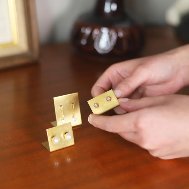 アクセサリーを美しく魅せる、洗練された真鍮製のピアスホルダー。
