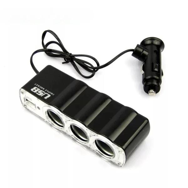 車のライターアダプター充電アダプタートリプルスプリッターライター出力 12V ABS ブラックシガーカーアダプターライターマルチソケット USB ポート