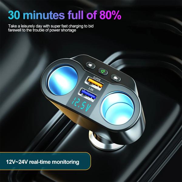 デュアル Usb 急速充電器ソケット車のシガーライタースプリッター自動 Fm トランスミッター Bluetooth ハンズフリー車の充電器