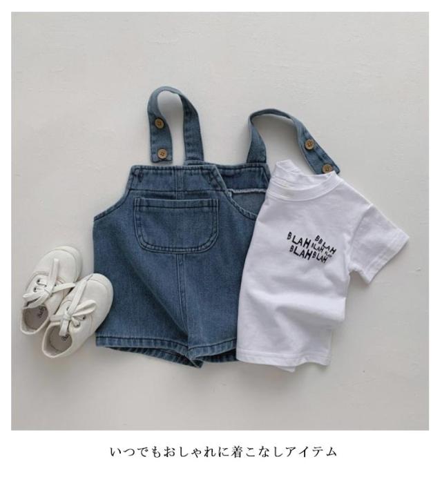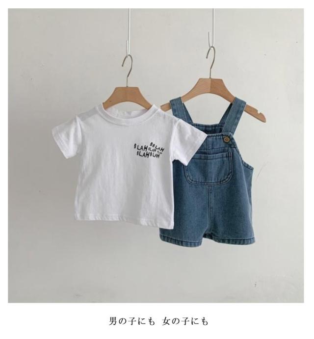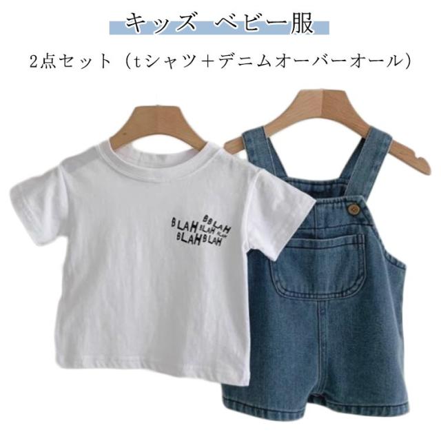 キッズ ベビー服 2点セット(tシャツ+デニムオーバーオール) オーバーオール デニム オールインワン サロペット ポケット付き サイズ調整 ロールアップ ジーンズ 男の子 女の子 春夏 80cm 90cm 100cm 110cm 120cm 130cm