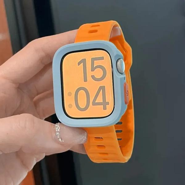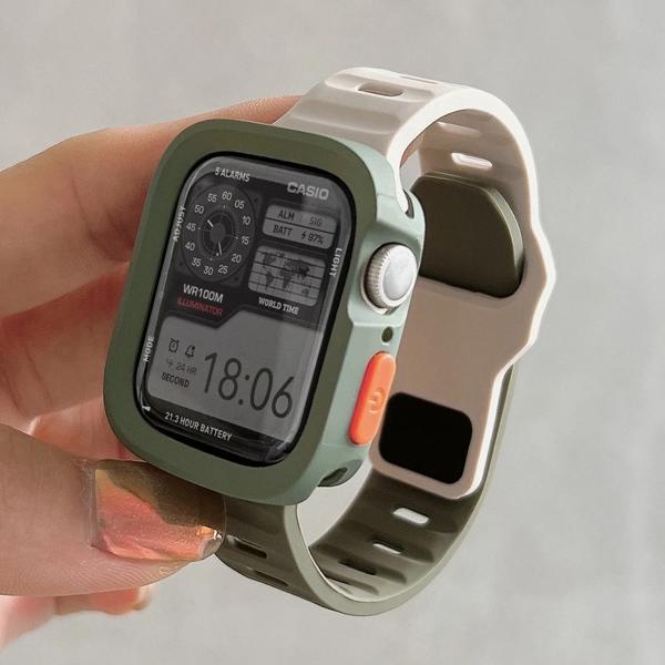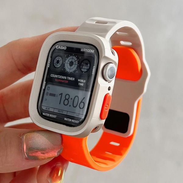 ケース + ストラップ Apple Watch ウルトラ 2 49 ミリメートル 44 ミリメートル 40 ミリメートル 45 ミリメートル 41 ミリメートルシリコンブレスレットコレアカバー iWatch シリーズ 8 9 7 6 SE 5 4