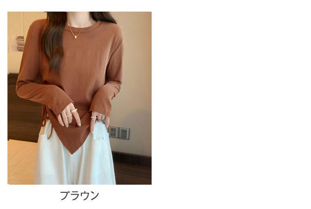| 不規則シルエット&紐付き長袖Tシャツ。 個性的でこなれ感のあるアシンメトリーシルエットが動きのあるシルエットで細見え効果抜群! 程よくボディラインにフィットし、女性らしい雰囲気を演出。 肌触りの良い素材で通気性が良く、春秋にぴったりの軽やかな着心地。 カジュアルにもフェミニンにも着こなせる、春コーデのマストアイテム! | |