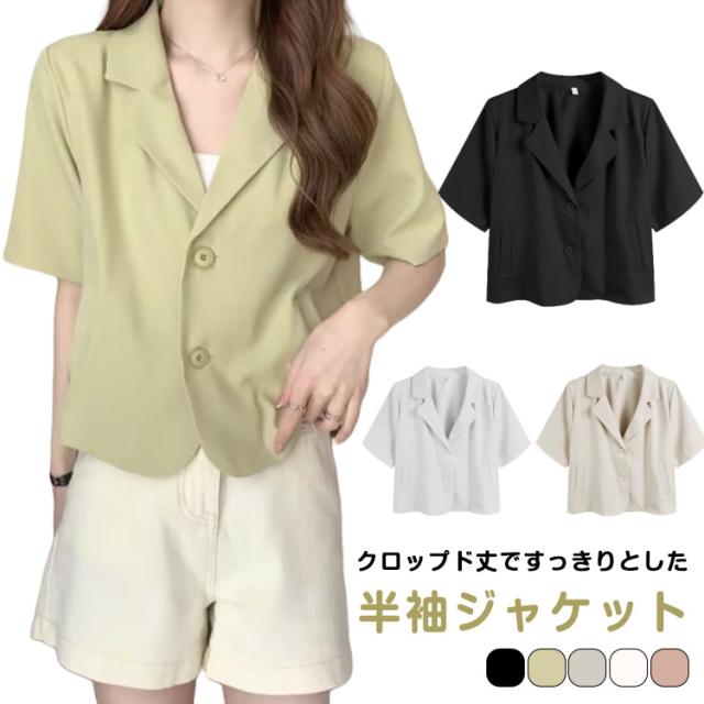 アウター テーラードジャケット 半袖 クロップド丈 レディース 春 夏 カジュアル スーツ ジャケット ショート サマージャケット 薄手 裏地なし 接触冷感 ライトアウター 羽織り ブラック ピンク 大人 学生 20代 30代 40代 50代 【送料無料】