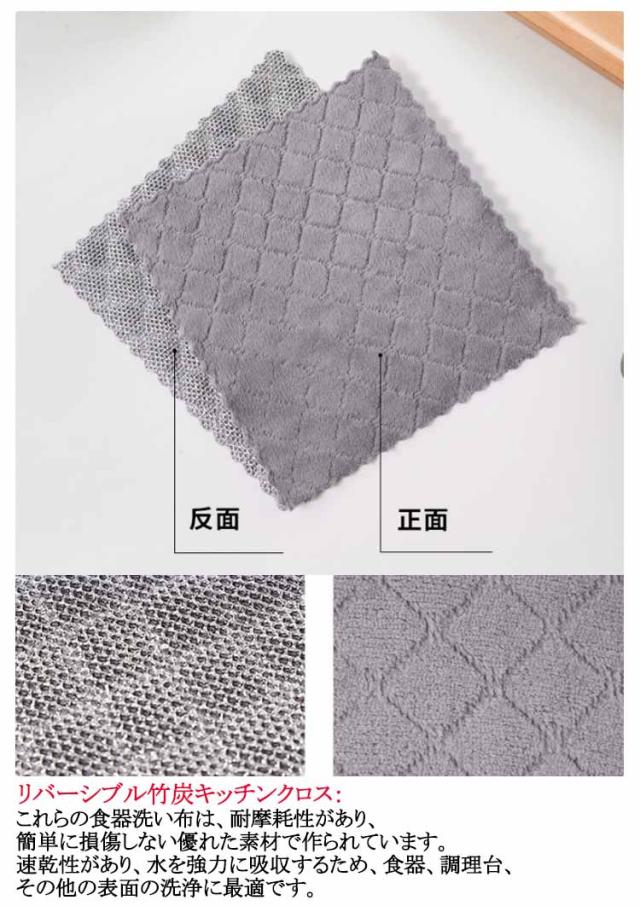 リバーシブル竹炭キッチンクロス 10枚セット25*25cm キッチンクロス 竹炭キッチンクロス リバーシブルクロス 食器用キッチンタオル キッチン雑巾 強力な吸収性ワイヤーふきん ウェットドライクリ ニングクロス 掃除雑巾 食器洗い布 両面 布巾 吸水 家庭用 送料無料