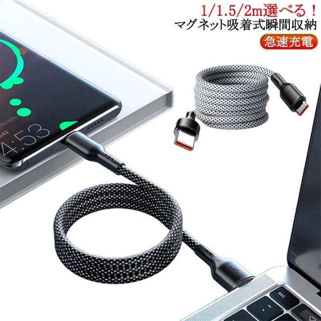 | サイズについての説明 | 商品名:瞬時収納マグネット充電ケーブル 選べるタイプ:Type-C to Type-C / Type-C to Lightning / USB to Type-C / USB to LightningC / Type-C to Lightning / USB to Type-C / USB to Lightning カラー:ブラック、グレー 充電速度:15W / 30W / 60W / 100W 長さ:1 / 1.5 / 2 メートル 特徴:内蔵マグネットで瞬間収納。 |