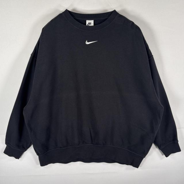 古着 ナイキ NIKE スウェット トレーナー プルオーバー スウッシュ ワンポイントロゴロゴ刺繍 センターロゴ XS ブラック メンズ