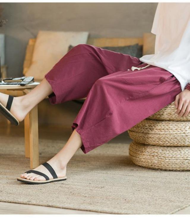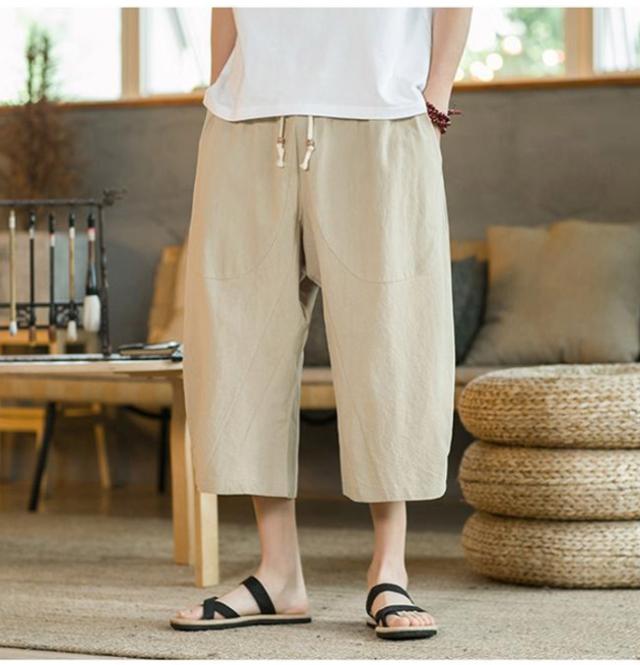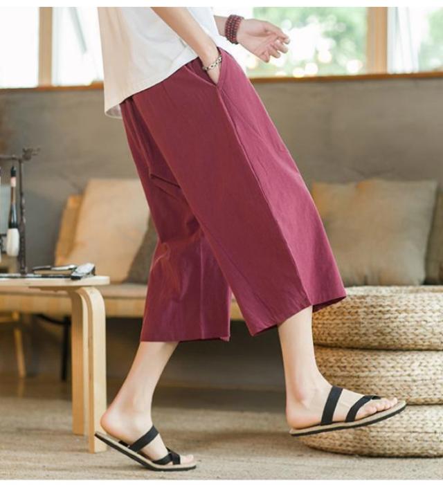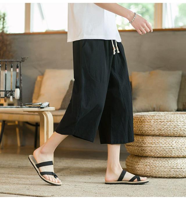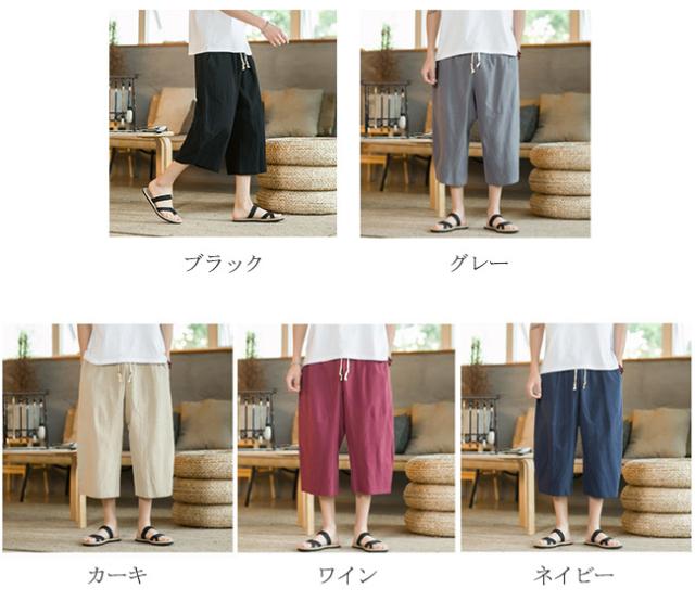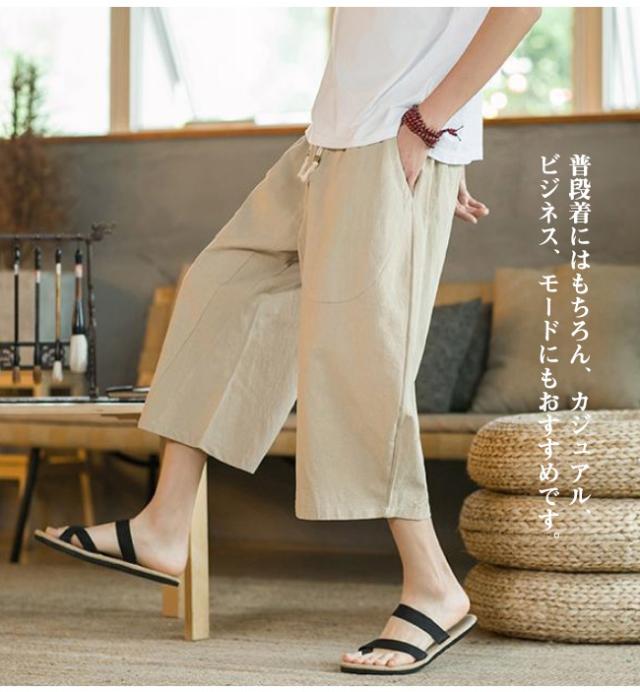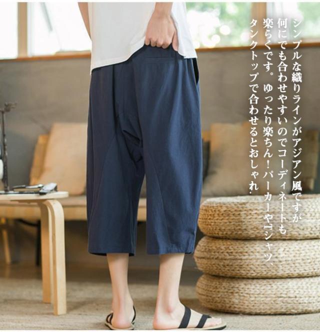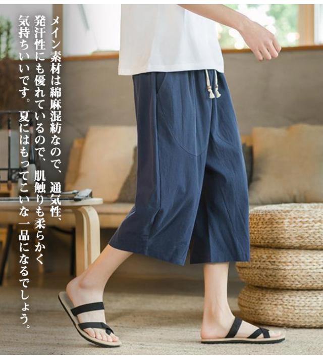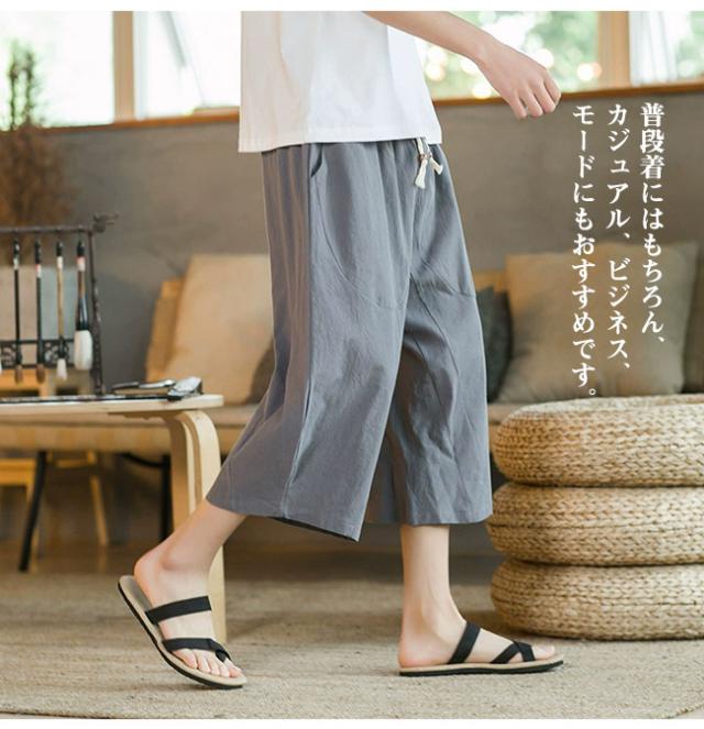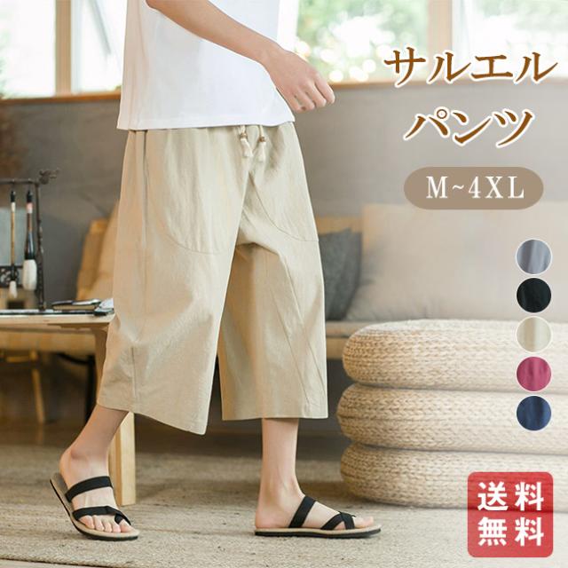 サルエルパンツ メンズ ミディアムパンツ 半パンツ 袴パンツ 7分丈 クロップドパンツ ズボン ショートパンツ ゆったり ワイドパンツ 夏 無地 調整紐 大きいサイズ 父の日