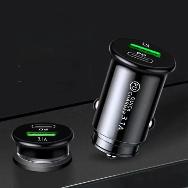 QC3.0 車の充電器急速充電白黒デュアルポートミニ自動車電話電源アダプタ PD 20 ワット USB TypeC 充電車のシガーライター