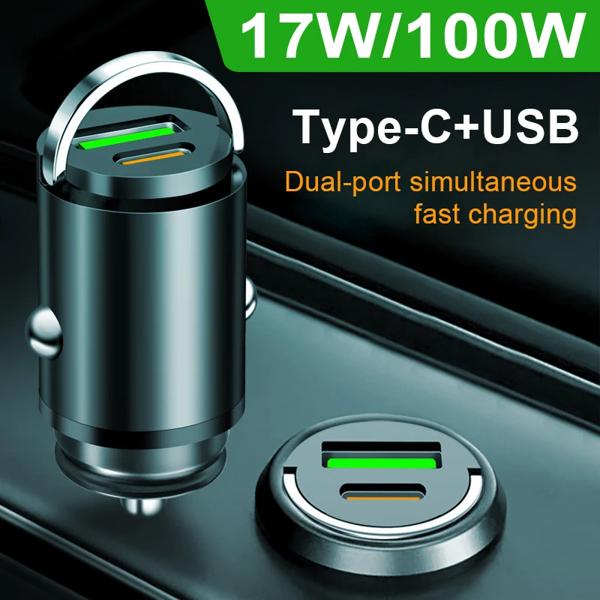 100 ワット USB アルミ合金ミニ車の充電器アダプタダブルポート高速充電シガーライター Iphone/サムスン/Huawei/Xiaomi