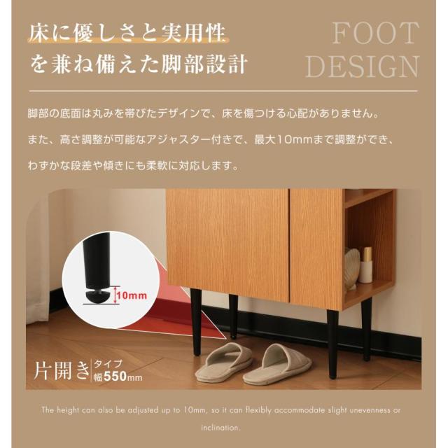 【安定感のある脚設計と実用的な収納スペース。】しっかりとした脚部構造で安定感を保ちつつ、下部にはゆとりのある収納スペースを確保。トイレスリッパやバス用品など、日常的に使う物をすっきりと収納でき、バスルームをより快適な空間に整えます。