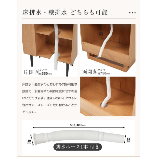 【床排水・壁排水 どちらも可能】床排水・壁排水のどちらにも対応可能な設計で、設置場所の制約を気にせずお使いいただけます。住まいのレイアウトに合わせて、スムーズに取り付けることができます。