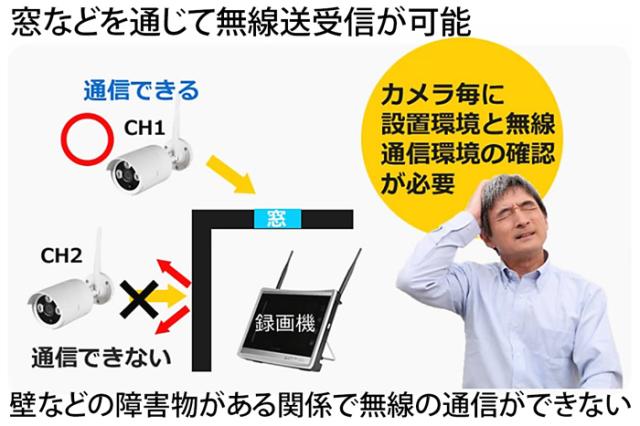 壁などの障害物がある場合、従来のワイヤレスカメラ(無線カメラ)では、正常に通信を行う事が難しい場面があります。