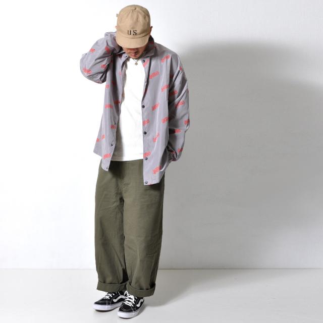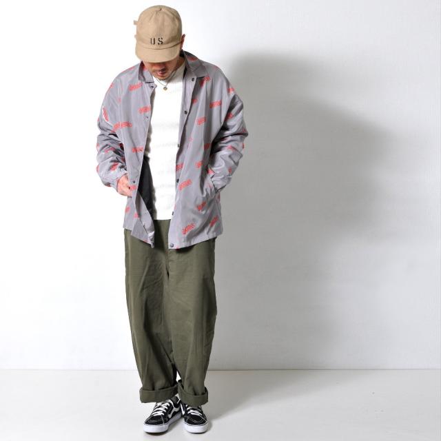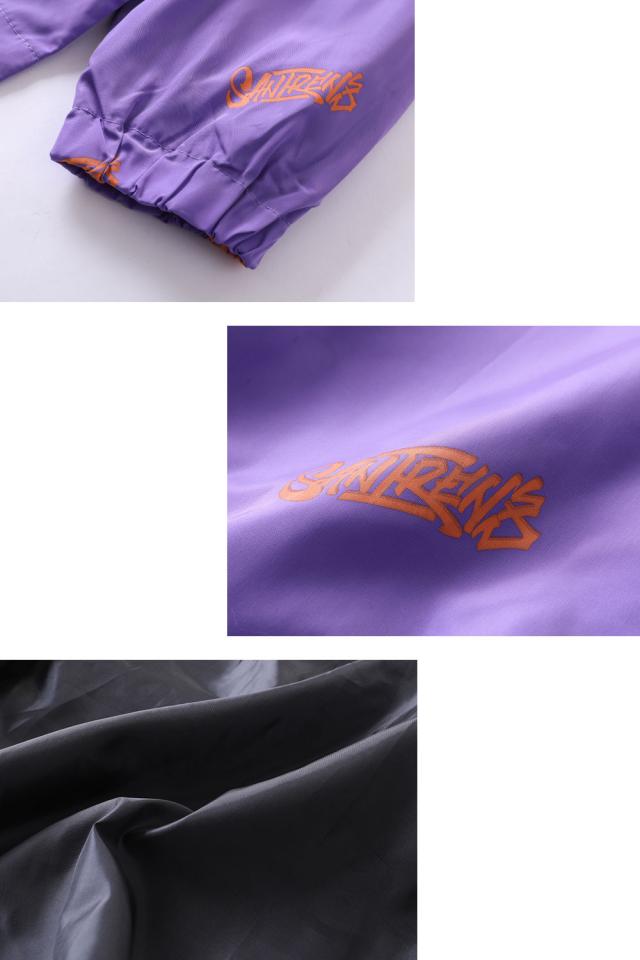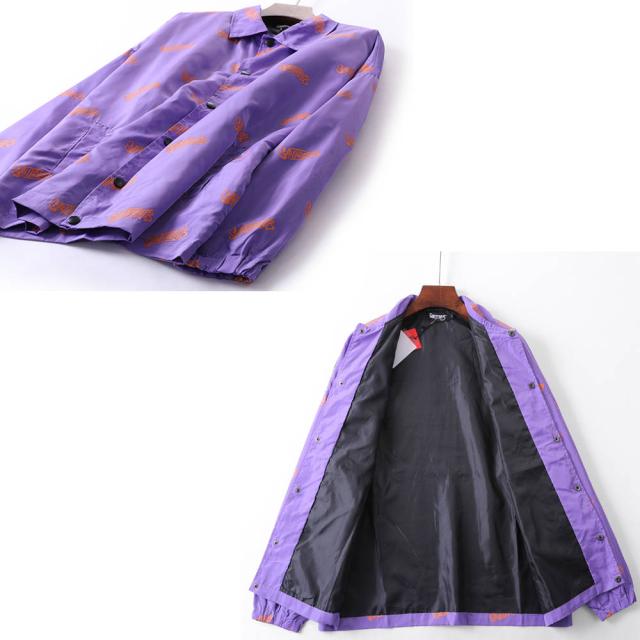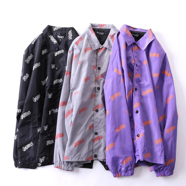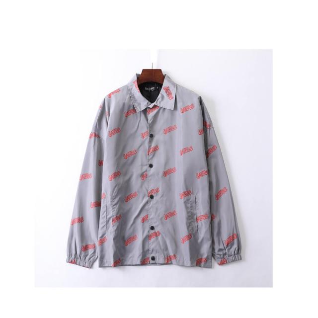英字のロゴが全体に入ったの薄手のナイロンジャケットストリート、アメカジ、カジュアルなど個性的なデザインの一枚はこれだけでスタイルが決まるスリムなボトムスやデニムとの相性抜群!ワイド系のパンツを合わせればゆったりコーデが完成合計ポケット数;2個カラー