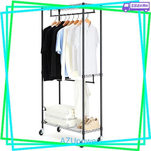 AMAZONベーシック ハンガーラック 2段 洋服ラック 耐荷重181KG 頑丈 キャスター付き 棚付き 耐荷重181KG, 幅91.4 X 奥行35.6 X 高さ182.9 CM, ブラック