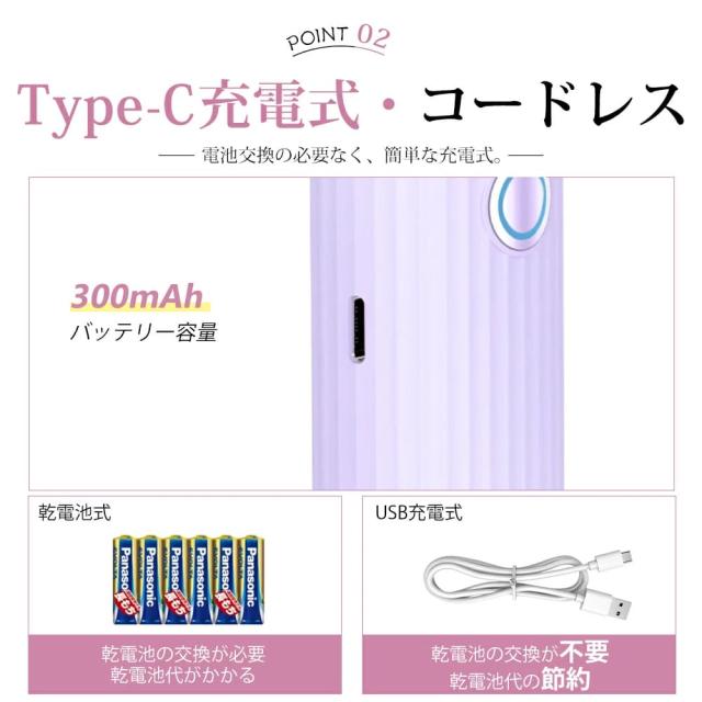 【Type-c充電式&持ち運び便利】Type-c充電式でいつでもどこでも簡単に充電できます!充電式電池が使用できるので、何度も繰り返し使用可能と経済的かつエコなのはメリットです。USB充電式で、電池交換の手間が不要で便利です。※本製品はフル充電約2時間かかります。