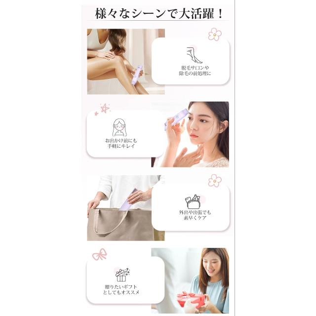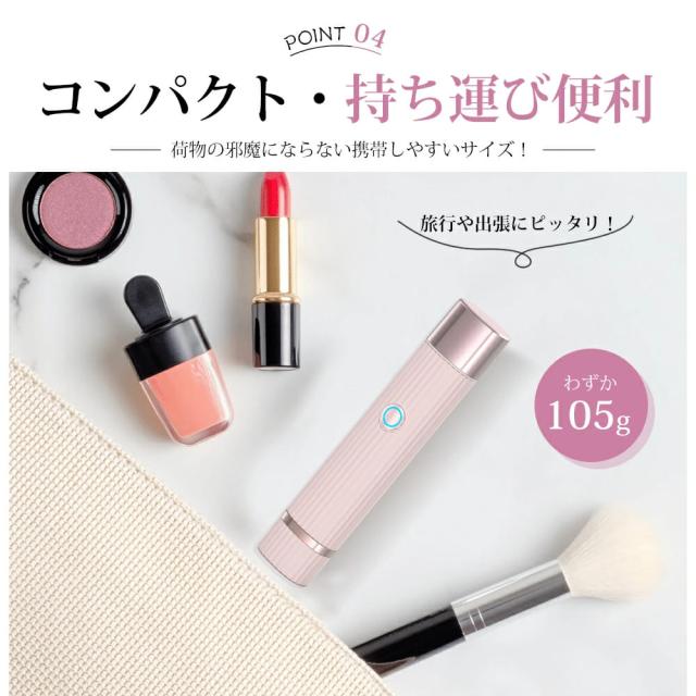 【持ち運び便利&お手入れやすい】コンパクトなデザインで収納しやすく化粧ポーチやハンドバッグなどに収納して携帯できます。重量も約105gと軽量なので、携帯する際に負担がないのがポイントです。旅行先や出張先、オフィスなどへ持ち運んで使いたい方もお勧め!専用ブラシ付きと肌に触れるヘッド部分を取り外して水洗いできるため、放っておくと毛くずが隙間に溜まって切れ味が落ちるほか、雑菌が繁殖してしまう場合を防ぎます。