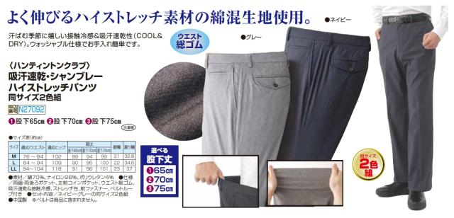 ハンティントンクラブ 吸汗速乾・シャンブレーハイストレッチパンツ 2色組 選べる股下丈 スラックス 綿混 接触冷感 ズボン パンツ メンズ 紳士服 シニア 男性 グレー ネイビー 紺色 無地 シンプル 上品 裾上げ済み シニアファッション 40代 50代 60代 70代 80代 90代 父の日 お父さん おじいちゃん 春物 夏物 春夏