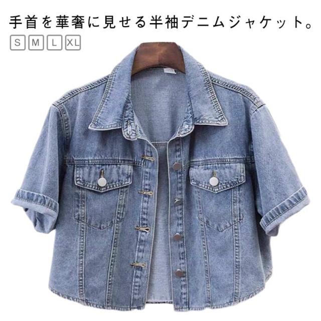 ジャケット デニムジャケット レディース サマージャケット デニム 半袖 ショート丈 コート Gジャン 薄手 アウター デニムシャツ ライトアウター 羽織り 半袖 夏服 春 夏 秋 普段着 オシャレ