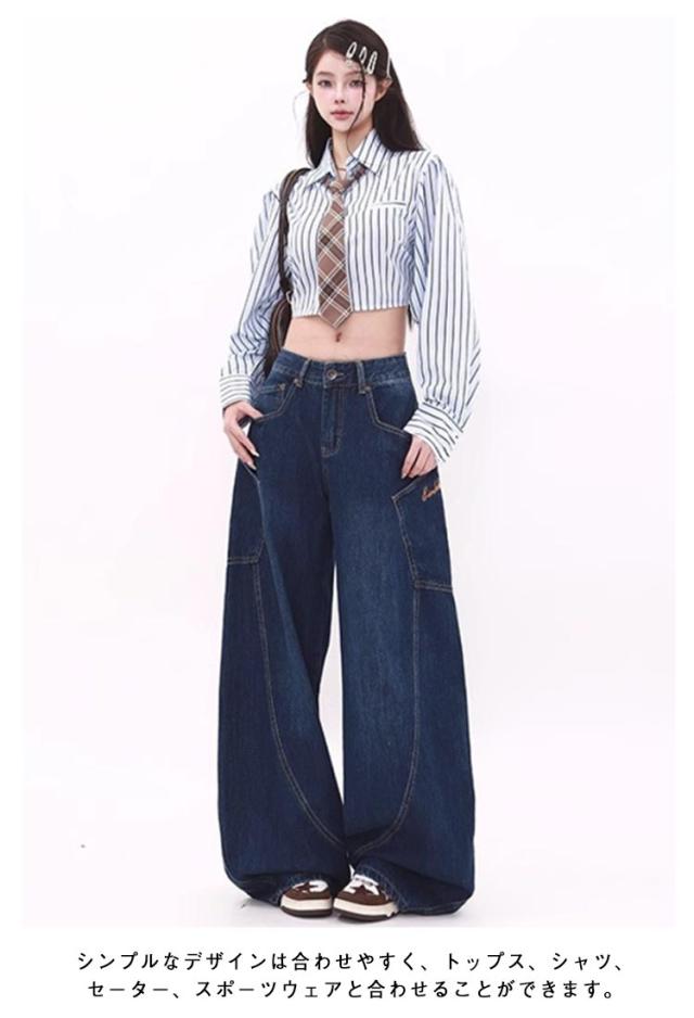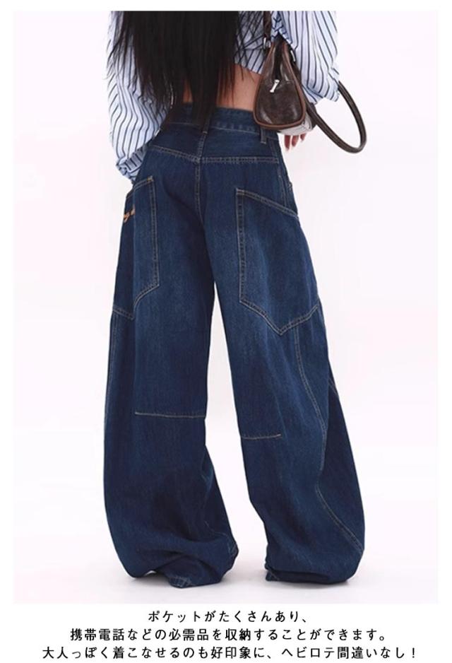 レディース デニム ジーンズ きれいめ デニムパンツ デニム ワイドパンツ ロングパンツ ゆったり バルーンパンツ 体型カバー ダンス 太め カーブパンツ 練習着 部屋着 かっこいい 夏用 パンツ レッスン着 韓国 無地 ヒップホップ