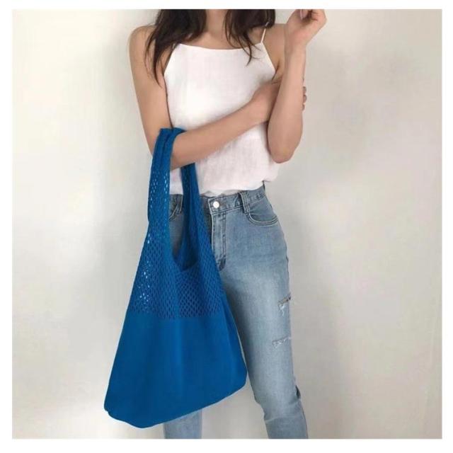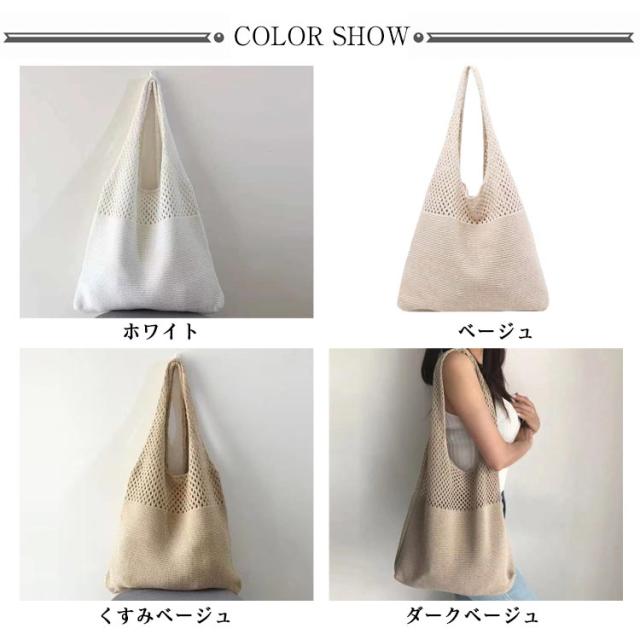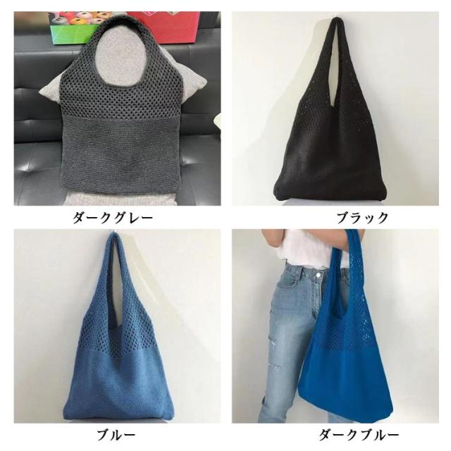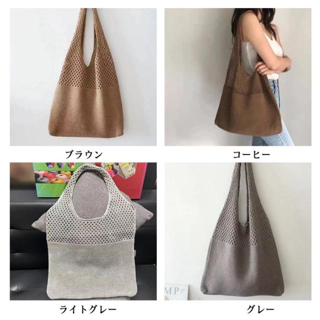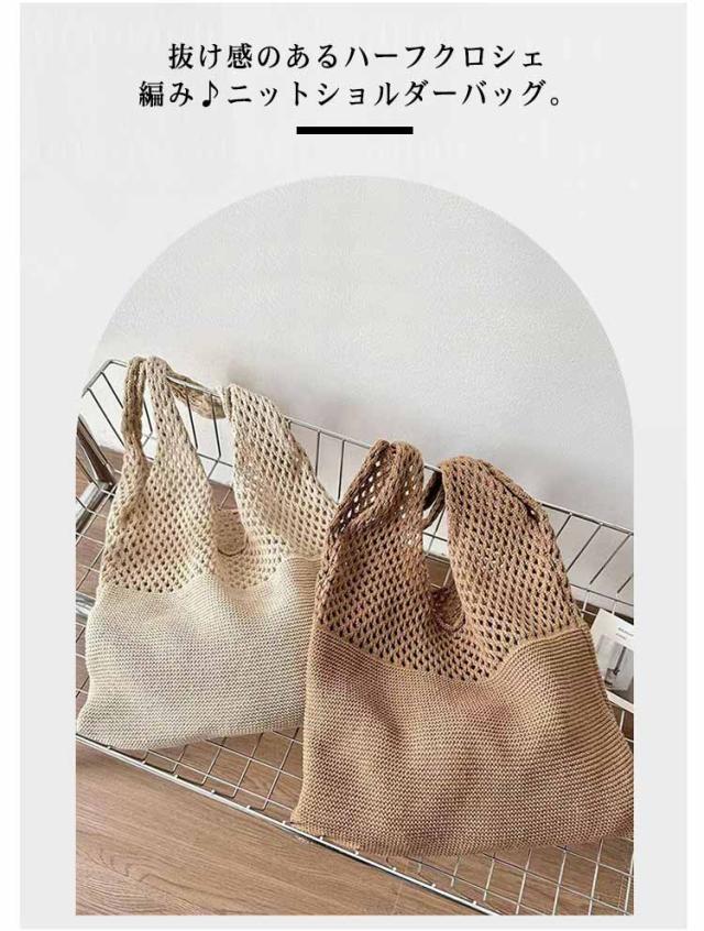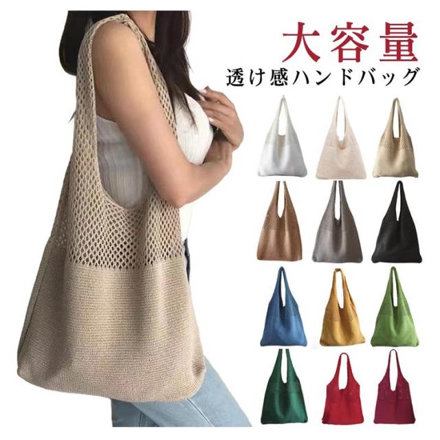 レディース 網バッグ トートバッグ ニット編み カジュアル クロシェ編み 肩掛けバッグ バッグ鞄かばん 手提げ 折り畳みバッグ 無地 a4対応 ニットバッグ ニット編み シンプル ナチュラル 透け感ハンドバッグ 柔らかい