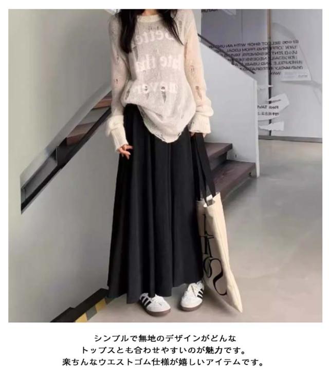 | カジュアルでありながらも洗練された印象を与えます。 ウエストゴム仕様のスカートは着心地が良く、体型をカバーしつつもスタイルを美しく見せるハイウエストデザインが特徴です。 フレアシルエットのマキシ丈スカートは、動くたびに優雅に揺れます。 シンプルで無地のデザインがどんなトップスとも合わせやすいのが魅力です。楽ちんなウエストゴム仕様が嬉しいアイテムです。な無地デザインなので、どんなシーンにも合わせやすく、ロングシーズン活躍します。カジュアルでおしゃれなので、ランチやお出かけにも着回しやすい優れものです。 | |