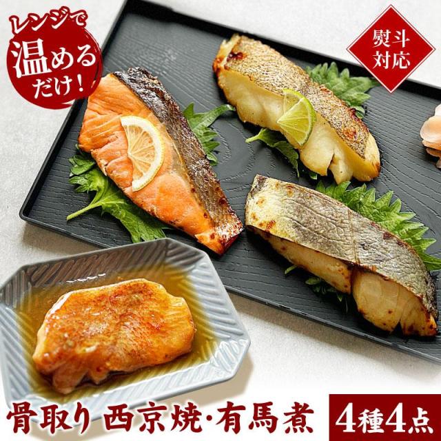 骨取り 切身 西京焼き&有馬煮4種4点 切り身 骨とり お歳暮 魚総菜 煮魚 焼魚 焼き魚 お惣菜 惣菜 おかず 総菜 一人暮らし レンジ 時短 調理済み 化粧箱 ギフト プレゼント