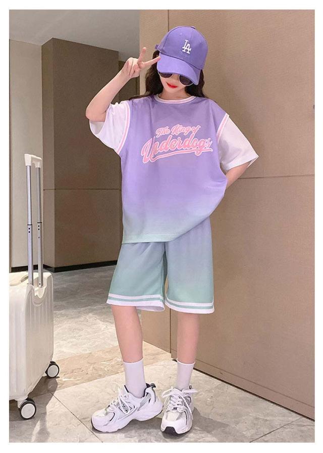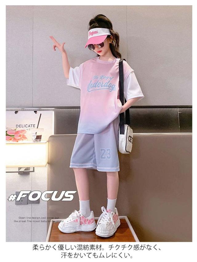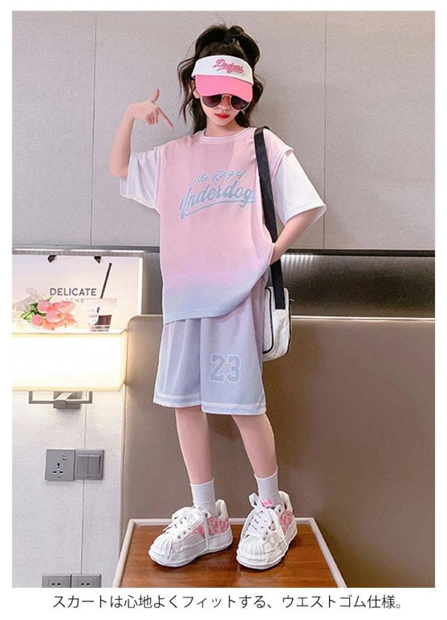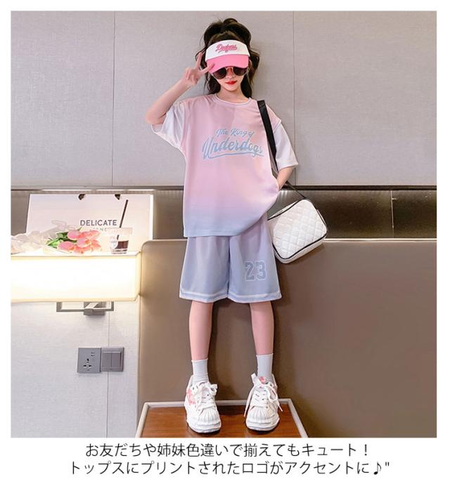 スポーツウェア スポーツウェア 子供服 女の子 2点セット 夏服 上下セット Tシャツ 半袖 運動着 子ども服 春夏 キッズ プリント 上下 セットアップ こども 子供 子ども お出かけ お出掛け 韓国風 大きいサイズ ウエストゴム