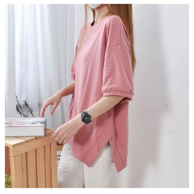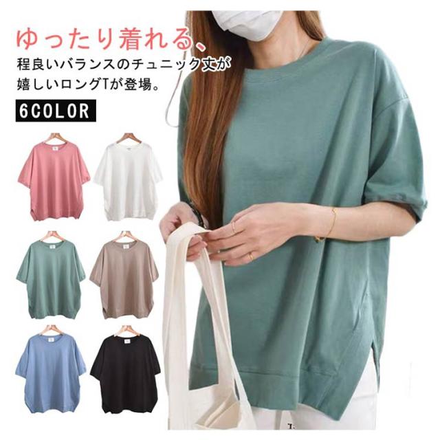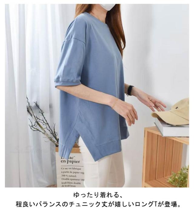 ロングTシャツ サイドスリット レディース ロング サイドスリット カットソー 二の腕カバー インナー ドルマンスリーブ トップス Tシャツ きれいめ チュニック ティーシャツ マタニティ ゆったり ワイド カバーアップ 体型カバー 大人かわいい